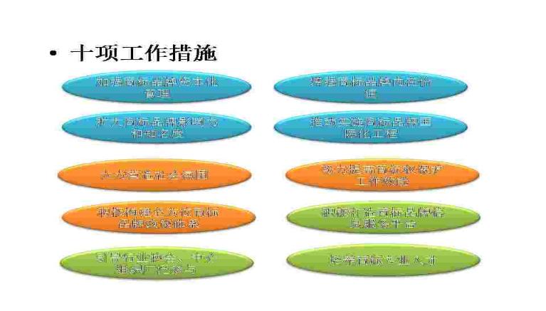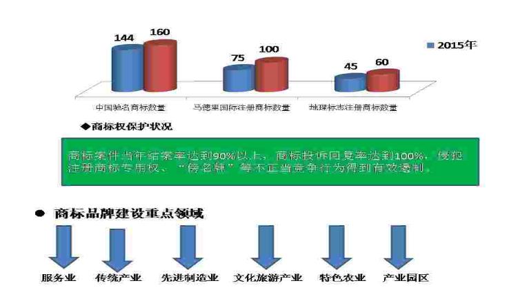 第三部分:推进重点工作落实。围绕我省推进服务业发展攻坚、工业强基工程、率先实现农业现代化等战略规划,按照尊重市场规律、发挥好政府作用的原则,制订了4方面16条工作措施。一是加快重点领域商标品牌建设。重点培育和发展服务业、传统优势产业、先进制造业、文化旅游产业、特色农业、产业园区商标品牌。二是发挥企业商标品牌建设主体作用。引导和支持企业加强商标品牌资本化管理、增强商标品牌内在品质、扩大商标品牌影响力和知名度、推动实施商标品牌国际化工程,促进企业提高品牌营销和管理水平,提高发展质量和效益。三是优化商标品牌发展环境。提出营造社会氛围、提高商标权保护工作效能、构建全方位政策体系等3项举措。四是提升商标品牌建设服务水平。提出从建设商标品牌信息服务平台、引导行业协会和中介组织参与、培养商标专业人才等3个方面提供服务保障。